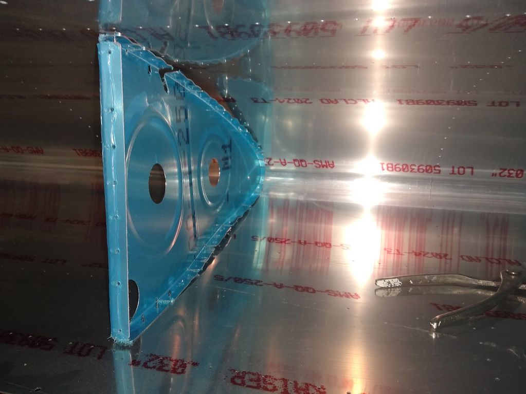 Step 1 - photo 1 - cleco rib bottom flange aft four holes to skin